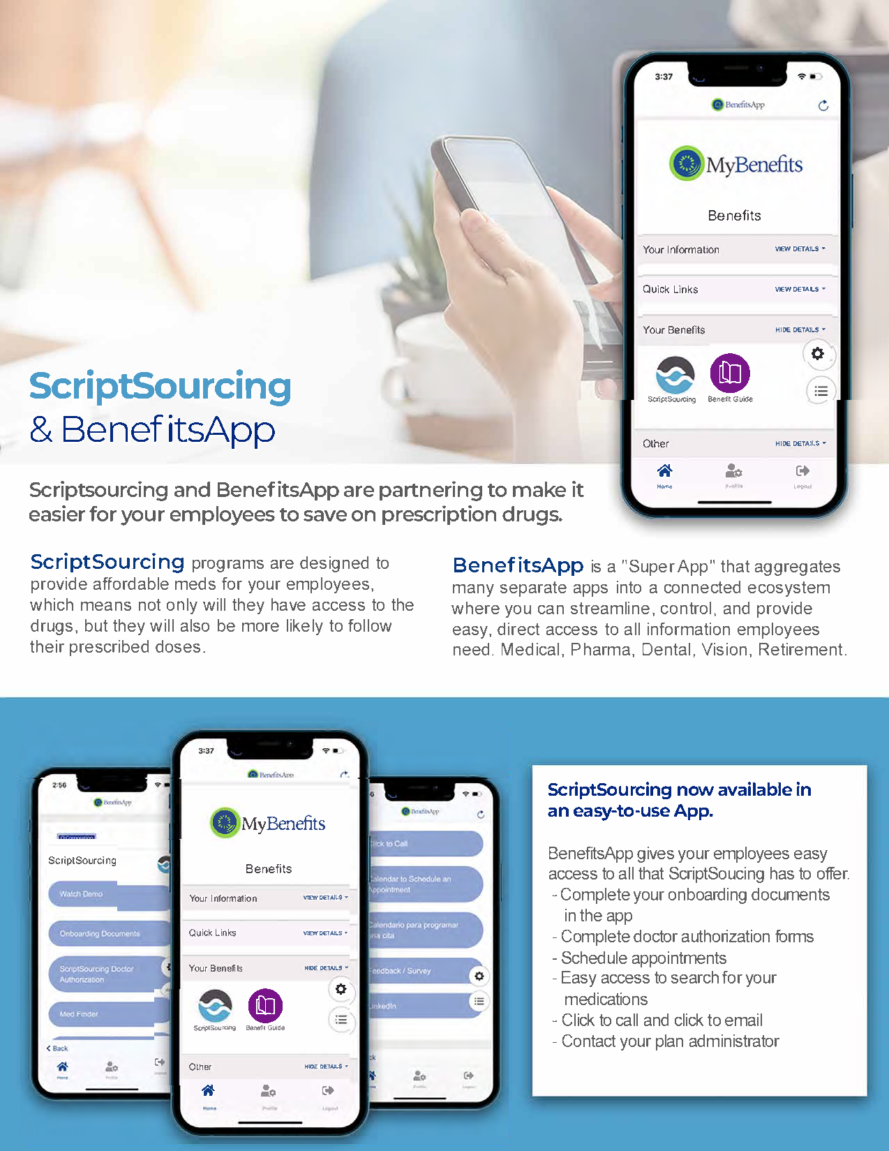 ScriptSourcing and BenefitsApp are partnering to make it easier for employees to save on prescription drugs.