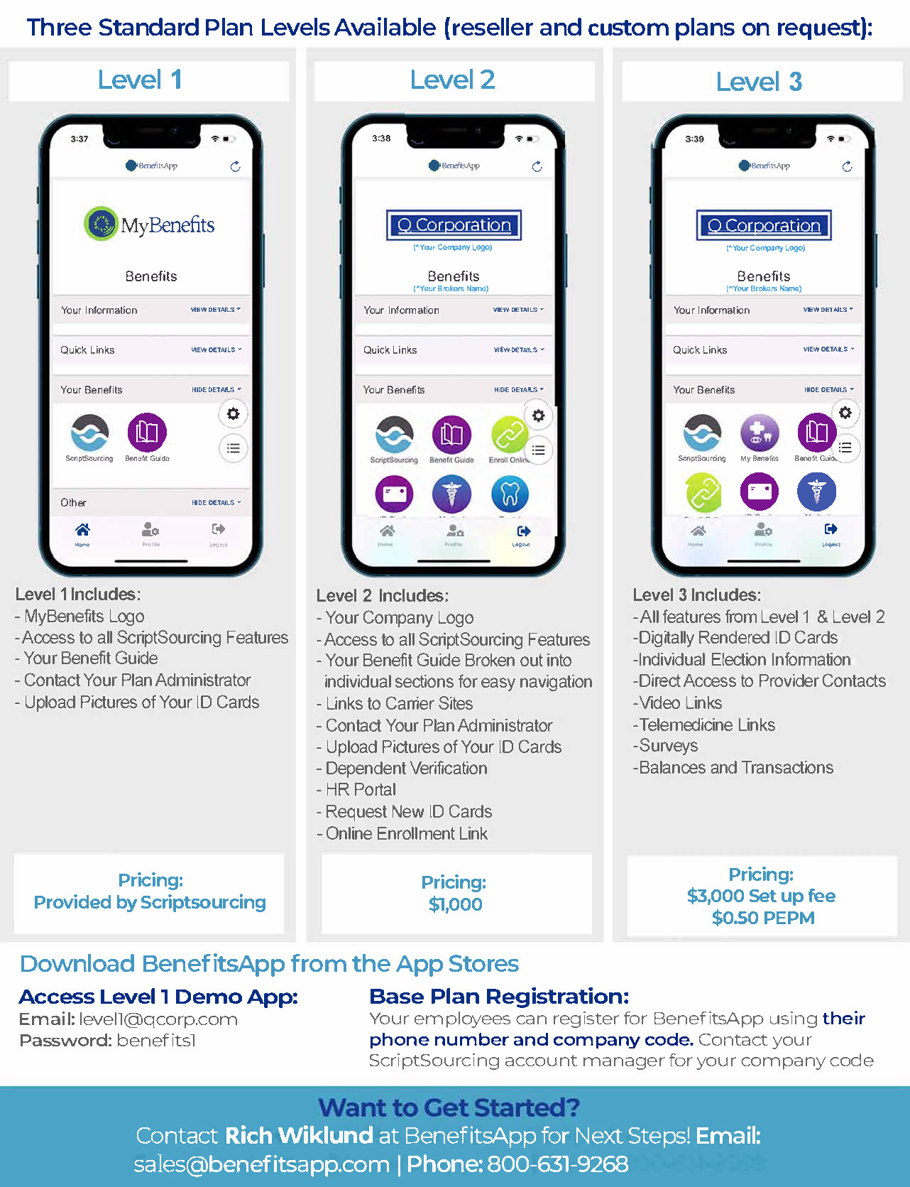 Share the BenefitsApp demo with clients. Login information can be found under each section below.